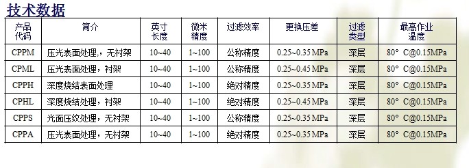 ■ CPPS60 - 聚丙烯熔喷滤芯,光面压纹处理 ■ CPML60 - 聚丙烯熔喷衬架滤芯,光面处理