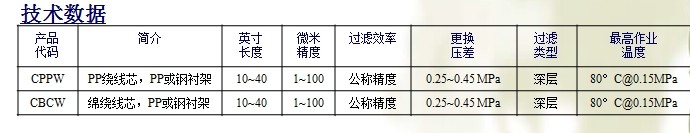 产品种类■ CPPW - 聚丙烯绕线滤芯 ■ CBCW - 漂白棉绕线滤芯